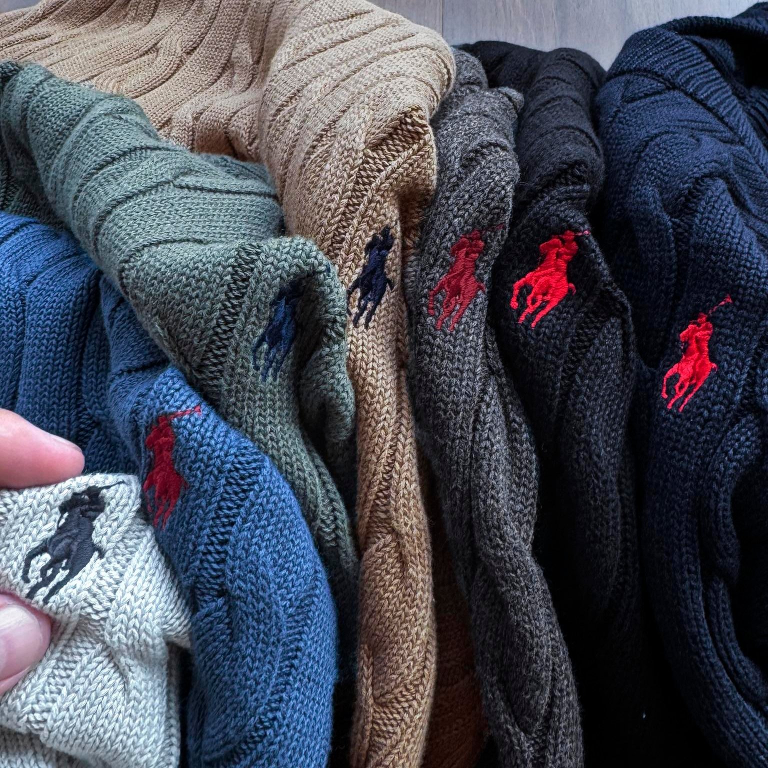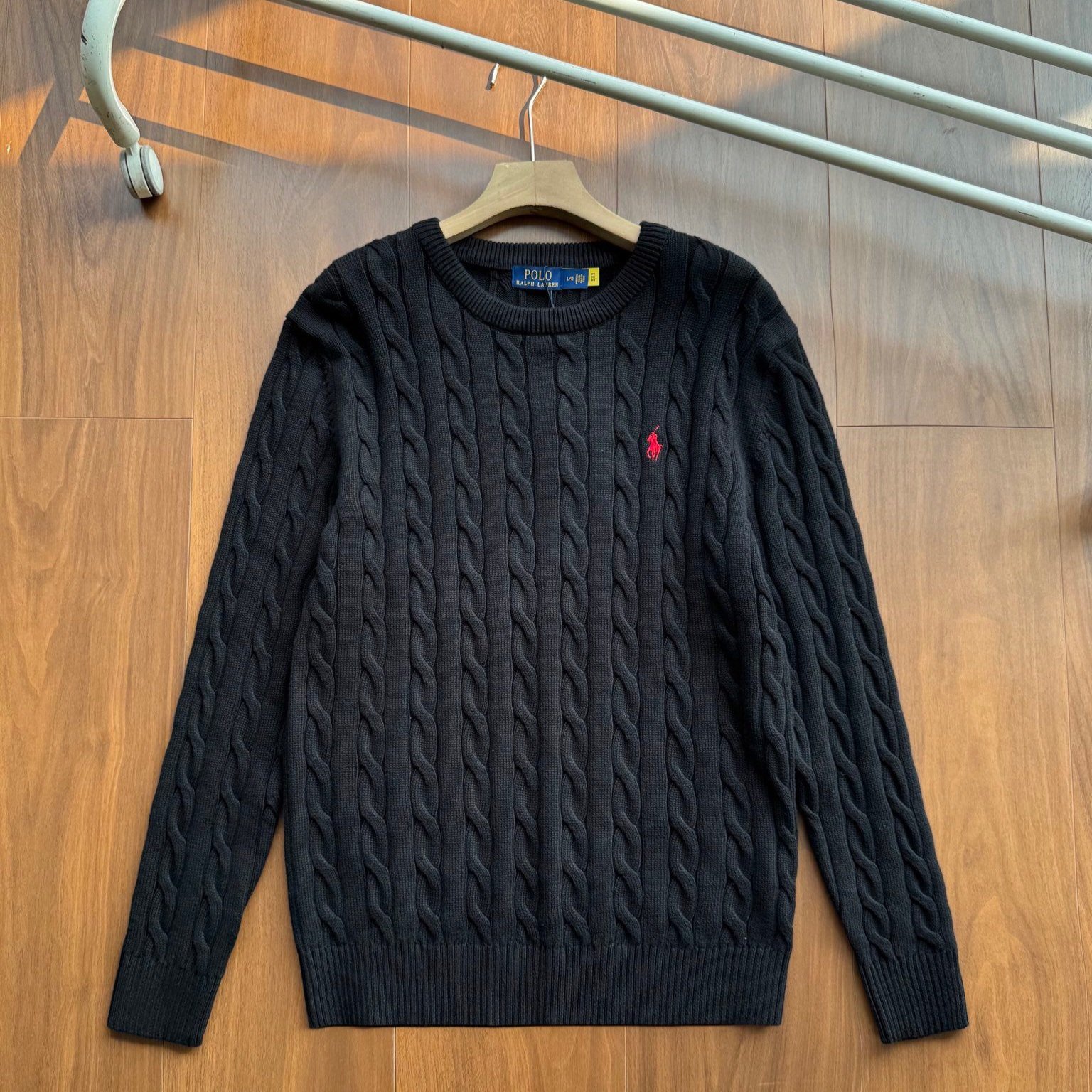 Premium cable-knit crewneck sweater made from 100% thick cotton (400g, double-sided 32-gauge knit). Warm, comfortable, and high-quality.