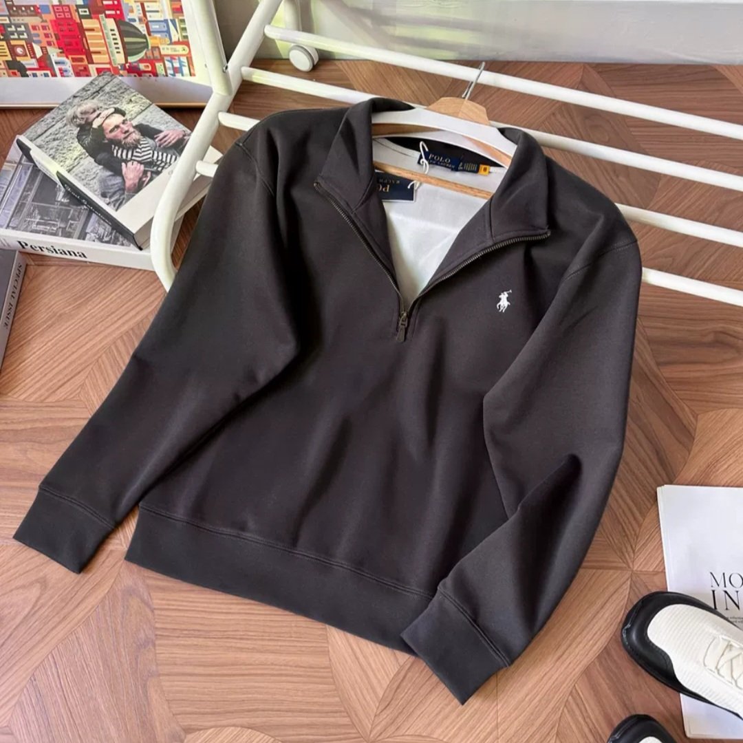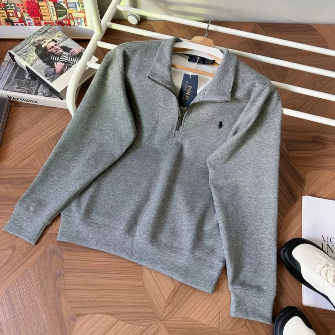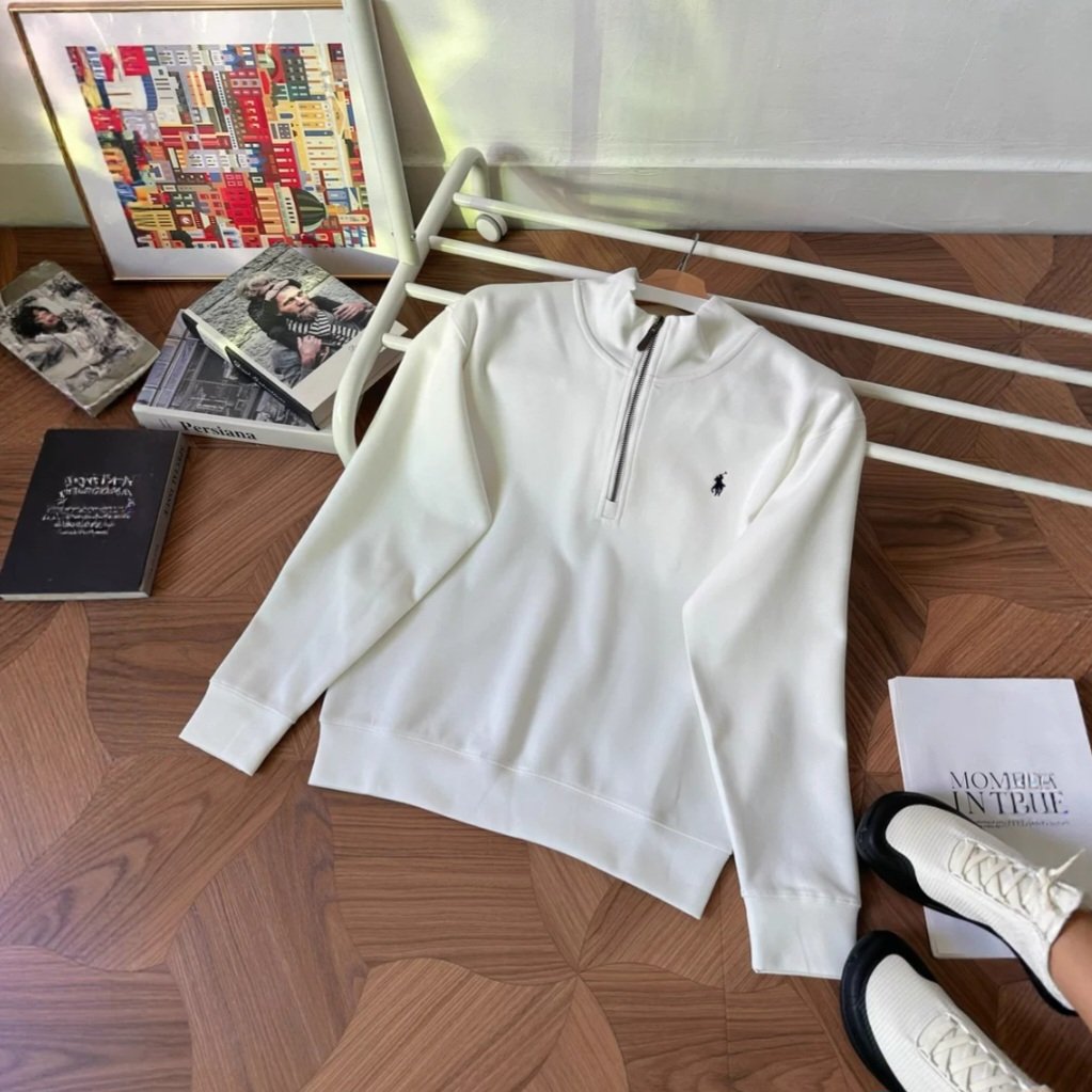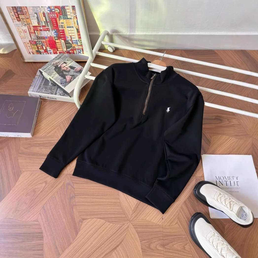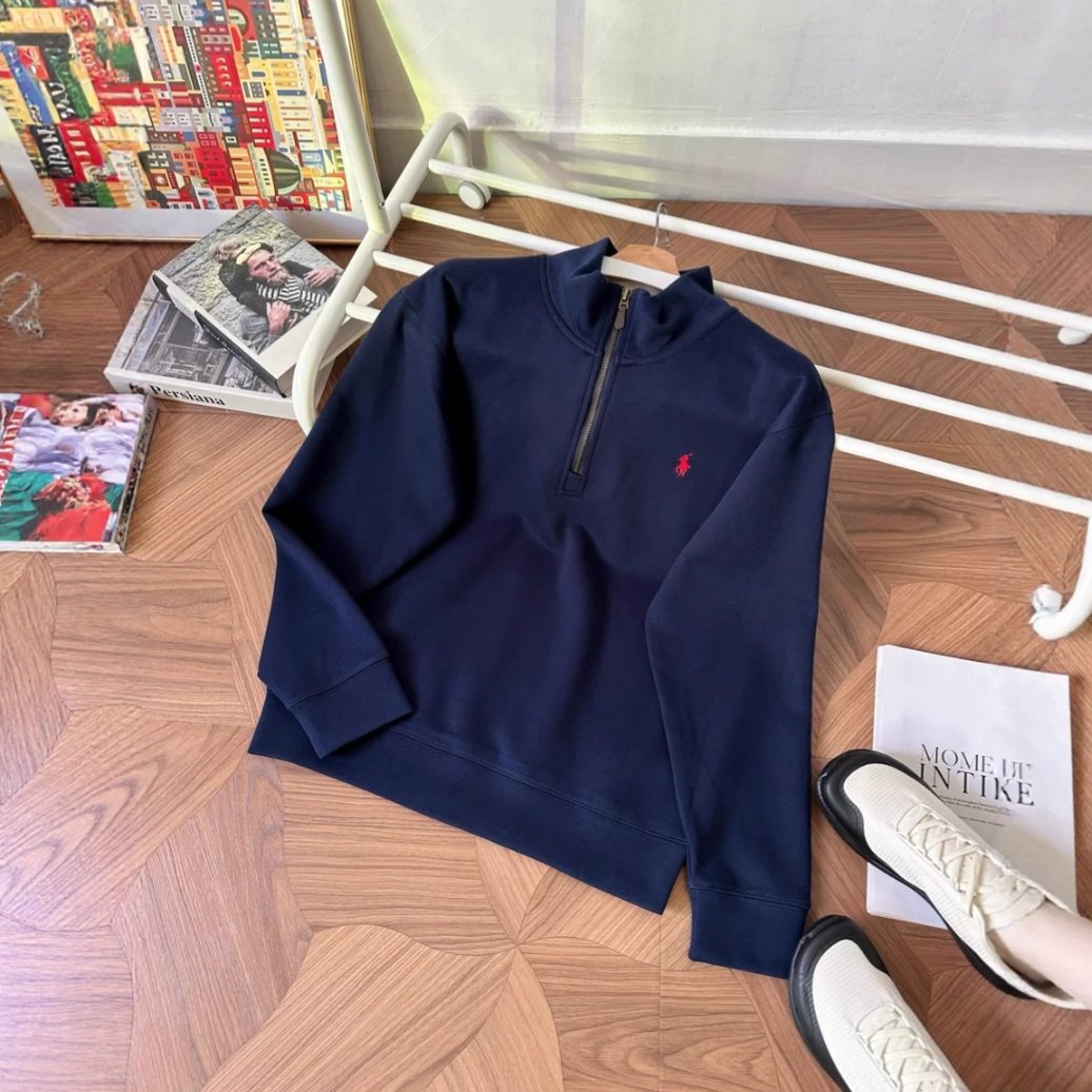 Classic Ralph Lauren half-zip high-neck sweatshirt with premium soft fabric that feels smooth and non-itchy on the skin. Features clean minimal design with the iconic small embroidered logo. Original Polo brass zipper, structured collar for wind protection, and a relaxed fit suitable for layering or solo wear. Comfortable stretch for daily use.