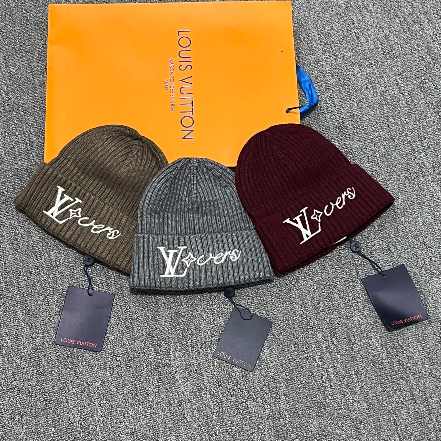 قبعة شتوية محبوكة بتصميم مستوحى من LV، مع تطريز فاخر وملمس دافئ وناعم. مناسبة للاستخدام اليومي في الشتاء وللرجال والنساء.